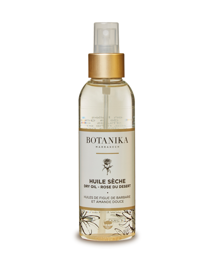 Highly concentrated in precious oils, the desert rose dry oil from the Botanika Marrakech range based on argan, prickly pear and sweet almond oils, rich in vitamin E, infuses you with incredible comfort from the first drop.