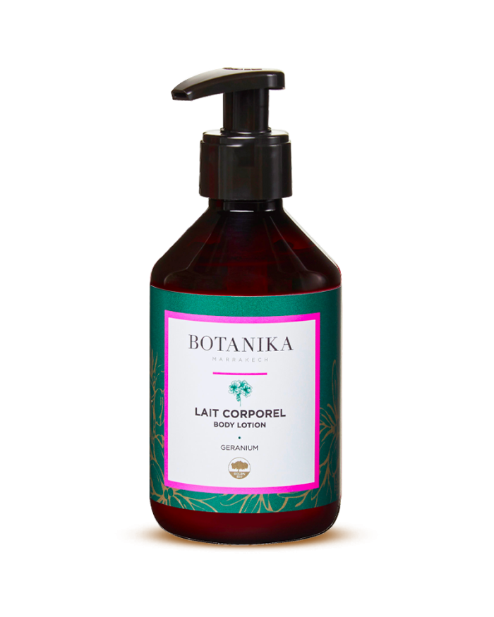 The Geranium body milk from the Botanika Marrakech range, based on argan leaf and calendula extracts, gently nourishes your skin.