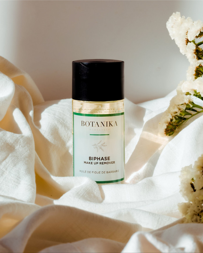 The make up remover Biphase of the Botanika Marrakech range based on natural botanical active ingredients (argan oil and argan leaf extract) removes make-up, cleanses and tones, for balanced skin without any greasy residue. Its bi-phase formula acts both as a moisturizing oil for dry skin and as a soothing water for oily skin.