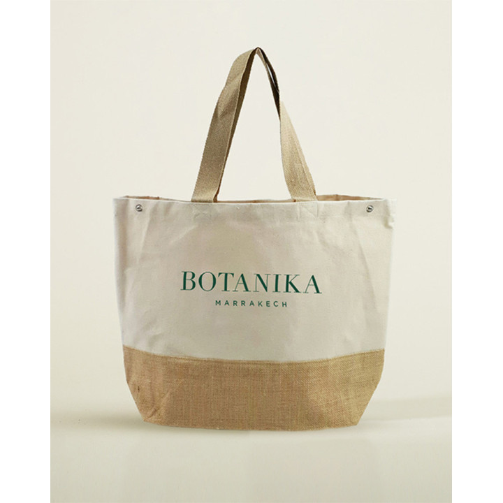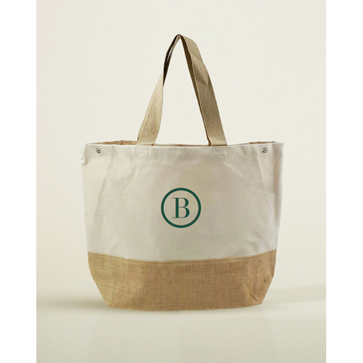 Large cotton tote bag with natural burlap laminated bottom