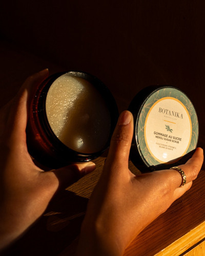 The Néroli Sugar Scrub from the Botanika Marrakech range is a natural formula that gently exfoliates dead skin cells, removes roughness, and stimulates microcirculation.